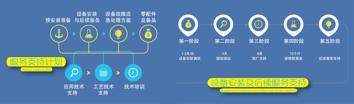 調(diào)試設(shè)備、日后的機器維護、保養(yǎng)及培訓員工的基本操作內(nèi)容。24小時服務(wù)的體系,保證客戶生產(chǎn)暢通。